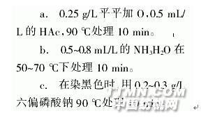 經上述精練工藝處理的絲羊絨,有時會存在氨綸的彈性損傷、脫膠不充分產生灰傷的問題。精練處理不良,主要表現在:染淺色時,真絲的光澤不好,染深色時產生白霧現象。為了解決上述問題,精練必須要均勻,精練后要充分水洗,還要酸洗,同時在染色前應進行下列處理: