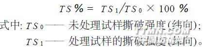 劑處理→水洗→染色→測試2. 2. 3 染色工藝普拉黃GN , % (ow f) 2冰醋酸,mL öL 0~ 4N a2CO 3, göL 0~ 8浴比50∶1染色溫度, ℃ 40~ 80染色時間,m in 20~ 1002. 3 測試指標2. 3. 1 上染百分率用722 型分光光度計分別測定染色前后染液的吸光度, 計算上染百分率。2. 3. 2 撕破強度保留率用Elem endo rf typeModelD2(2) 撕破強度儀分別測定未處理試樣及經絲素整理劑處理后, 再在60 ℃下用普拉黃GN 染色試樣的撕破強度, 然后按下式計算處理后試樣的撕破強度保留率( T S % ) :