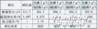 1 試驗1.1材料、助劑與儀器 紗線 9.7 tex X 2(60s/2)黑色(深色),12.96 tex×2(45 s/2)藍色(中深色),27.77 tex(21 s)玫紅(淺色)(以上色紗均用科華素中溫活性染料染色)。 助劑 純堿(工業(yè)級),保險粉(工業(yè)級,含量85%),皂洗劑AST(上海佳和化工廠有限公司)。 儀器 HS型高溫染色打樣機(廣東精湛染整設(shè)備有限公司),YG020B型電子單紗強力測定儀(常州第二紡織機械有限公司)。1.2試驗方法 稱取5 g色紗,經(jīng)皂洗液充分皂洗后采用堿劑與保險粉對色紗進行剝色,之后將紗線水洗至中性,烘干,冷卻,平衡24 h,測定其各項物理指標。其中,白度與均勻度采取目測評定。“好”表示剝色后紗線干凈,白度好;“較好”表示剝色后基本看不出底色,白度均勻,紗線略發(fā)暗;“中等”表示剝色后底色較淺,均勻度一般;“較差”表示剝色后底色明顯,且不均勻。