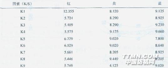 通過K/S值我們可以得出其極值,并通過極值對實驗結果進行分析得出固色階段的最佳工藝。 表7