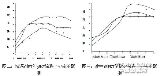 使用T、PT一定要用堿調(diào)節(jié)pH=9~10,而PNT不用調(diào)節(jié)pH。用環(huán)保型涂料改性劑PNT改性后生產(chǎn)的涂料彩色牛仔產(chǎn)品這種趨向變得緩慢甚至達(dá)到平衡。因此一般增深劑只需少量應(yīng)用,用量控制在4—6%((o.w.f.))(見圖三)。