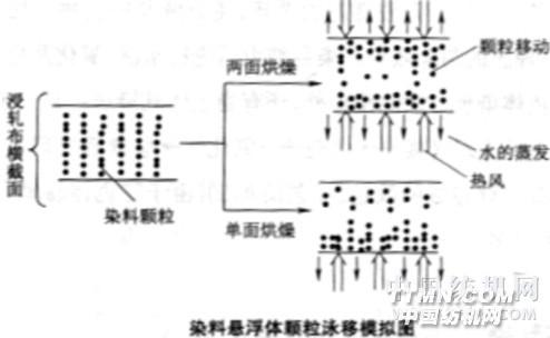 2.懸浮體軋染 隱色體染色法操作比較麻煩,初染率高,對于結構緊密的機織物,易產生“白芯”現象。 為提高染料的適應性,獲得較好的勻染性及透染性,機織物染色時常采用懸浮體軋染。懸浮體軋染法就是將還原染料的超細粉配成懸浮體溶液直接浸軋在織物上,然后軋還原液,在汽蒸條件下使染料還原成隱色體,從而吸附、上染纖維的染色方法 工藝流程:浸軋染料懸浮液(→烘干) →浸軋還原液→汽蒸→水洗→氧化→皂煮→水洗→烘干該方法可以克服隱色體染色初染率高和移染性能差的缺點,不會有“白芯” 懸浮體對纖維無親和力,均勻分布在織物毛細管內部纖維與紗線表面,還原后隱色體被纖維吸附,并擴散進入纖維內部,具有較好的勻染性和透染性 對染料適應性強,不受上染率限制,易拼色 產量高,質量好要求染料顆粒的直徑小于2μm,并至少有80%以上在1μm以下。 顆粒越小,懸浮液穩定度越高,對織物透染性好,還原速率快 顆粒太大,影響得色量,甚至造成