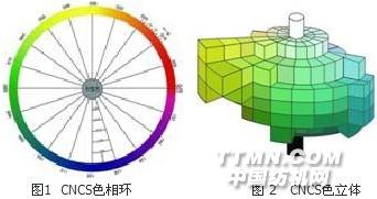 CNCS的7位數(shù)字編號,前3位是色相,中間2位是明度,后2位是彩度。 色相(Hue) 色相分成160級,其標(biāo)號范圍是001-160。色相是按由紅向黃、綠、藍(lán)、紫等顏色順序以逆時針方向在一個色相環(huán)上首尾相接順次排列。CNCS色相環(huán)見圖1。 明度(Value) 在理想黑和理想白色之間共分成99個明度級。明度標(biāo)號從01到99,從小到大(即從深到淺)順序排列。 彩度(Chroma) 彩度標(biāo)號從01開始,由色相環(huán)的中心向外輻射線方向依次遞增,如01、02、03、04、05、06……彩度小于01的極低彩度用00表示。 CNCS色立體 用色相、明度、彩度三個變量形成一個三維色空間。CNCS色立體見圖2。