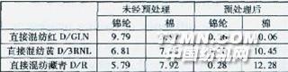 2.4預處理對直接混紡染料染色K/S值的影響表4預處理前后直接混紡染料染錦綸和棉上的K/S值