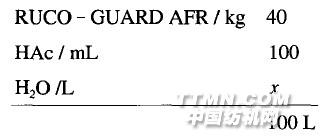 小樣結(jié)果表明:RUCO一GUARDA FR4 0g / L 的用量其效果與ASAHI GUARD AG - 480 70 g / L的用量相當(dāng)。而對(duì)于OLEOPHOBOL®.CO,要達(dá)到同樣的效果用量必須在30g/L的基礎(chǔ)上提高最好同時(shí)使用增效劑。2 大樣生產(chǎn)2.1 生產(chǎn)工藝2.1.1織物純棉染色斜紋機(jī)織布。密度:108根/10c m x5 6根/10 cm;紗支:36.9 tex x 49.2 tex (16sx 12s);幅寬:1.6 m.2.1.2生產(chǎn)設(shè)備LM H 428 一180型熱風(fēng)打底焙烘機(jī)。2.1.3 工藝配方1)工藝處方1: