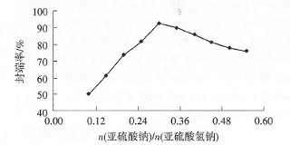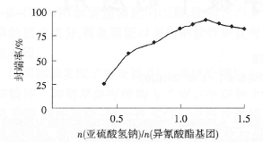 | 圖2 亞硫酸氫鈉和異氰酸酯基團量比值 對封端率的影響 |