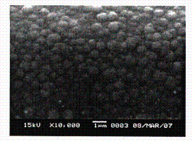 電鍍黑鎳鍍層的SEM照片. 可以看出鍍層表面成分均勻,鍍層較為細致,顆粒較小,約為500nm.