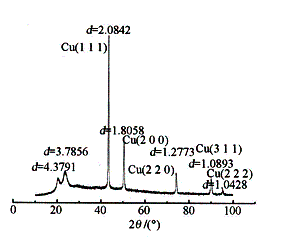| 圖4 電磁屏蔽織物電鍍黑鎳后的XRD譜圖 |