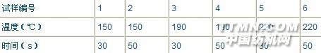 三、熱定形工藝實驗 1.主要實驗材料和儀器 精練漂白后的滌綸或滌棉織物,定形機。 表4-1 熱定型工藝條件