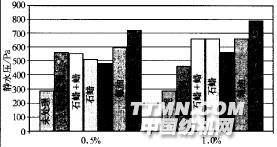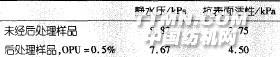 經特殊的抗表面活性處理的非織造材料各項指標值是未處理的1倍多。但在施加油劑的過程中,油劑本身需要具有足夠的表面活性來潤濕非織造材料,因而上過油的非織造材料樣品
