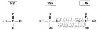 圖1 有機磷酸酯類有機磷酸酯在抗靜電劑、潤滑劑、乳化劑和表面活性劑方面都能起一定作用。在單個、雙個和三個磷酸鹽基之間有些差別(圖1)