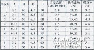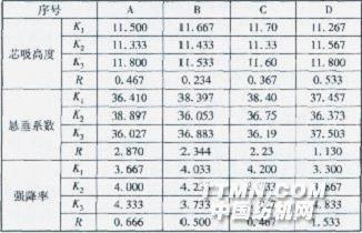 從表3數(shù)據(jù)知,各因素對芯吸高度的影響順