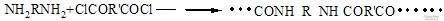 (一 )界面聚合這種方法通常先將羊毛用溶于水的二胺類處理,然后在經溶于有機溶劑(它與水不混溶)的二酰氯或而異氰酸酯處理,結果在纖維表面的水與非水界面發生聚合反應,生成聚酰胺,反應如下: