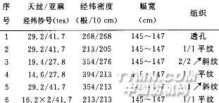 2 產品規(guī)格天絲/亞麻交織面料規(guī)格如表1。表1 天絲/亞麻交織面料規(guī)格