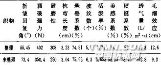 2.2 討論2.2.1 折皺回復(fù)角和頂破強(qiáng)力由表2可以看出,經(jīng)過整理的棉針織物折皺回復(fù)角比未經(jīng)整理的織物的折皺回復(fù)角有顯著提高,并且經(jīng)過整理的織物頂破強(qiáng)力也有所增加。這是由于整理后的棉織物上覆蓋了一層“網(wǎng)狀”羊毛蛋白薄膜,這層薄膜也使織物中的弱節(jié)得到了改善,再由于羊毛蛋白大分子的特殊結(jié)構(gòu)和大分子中的二硫鍵的作用使織物的彈性恢復(fù)能力增加,故折皺彈性和頂破強(qiáng)力都有所增加。2.2.2 耐磨性透氣性剛?cè)嵝詰掖剐杂杀?還可以看出,經(jīng)過整理的織物耐磨性有較大的改善,這是由于經(jīng)過整理的織物覆蓋了一層羊毛蛋白薄膜,由于該薄膜具有良好的變形和變形恢復(fù)能力,可以很好地抵抗外力的磨損,在一定時間內(nèi)保護(hù)了織物免遭摩擦外力的破壞,故經(jīng)過整理的織物耐磨性有較大的改善。由表2