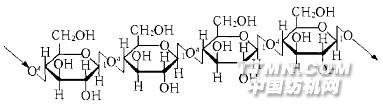 圖1 纖維素的化學結構生產過程相對于棉及其他纖維素人造纖維,由于其對空氣、水和土壤的污染較少,所以對環境是及其友好的。這已由一些仲裁機構的獎項所證明:曾獲清潔和創新技術的環境獎,分類技術歐洲獎,以及最高環境技術標準的2003WWF“Panda獎”。Lenzing Lyocell-LF(低原纖化纖維)是著名的、創新的,經典的Lenzing Lyocell纖維的一種低原纖化的變體,具有眾所周知的優良性能,諸如抗張強度、尺寸穩定、手感好、優異的染料吸附性、非常好的耐水洗性。在纖維生產時已發生交聯。無色的交聯劑基于反應性染料的錨固化學性質(圖2),適用于普通纖維和超細纖維。