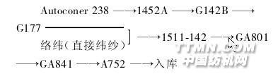 3 各工序技術關鍵 3.1 紡部 3.1.1 清棉由于遠紅外丙綸纖維回潮小,易產生靜電,剛開始生產時,丙綸卷搬運途中易破損,在梳棉機上棉網自動斷裂,不能正常生產,為此,我們采取了以下措施: (1)遠紅外丙綸包提前 24 小時進車間,使其與車間溫濕度達到平衡; (2)開包后用10% 的防靜電劑溶液噴灑在遠紅外丙綸纖維包表面,水溫控制在 40 ℃ 左右,噴灑后的丙綸纖維要人工混和均勻; (3)用化纖包裝皮做成棉卷套,每個棉卷都要包嚴,保持回潮率穩定,防止丙綸卷破碎; (4)A036C 型清棉機梳針打手速