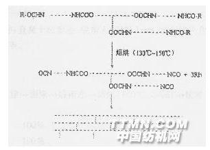 熱反應型水溶性聚氨酯是20世紀70年代初,由日本第一工業制藥公司及德國Bayer公司經過了10多年的研發而獲得成功的一系列用于紡織品后整理工藝中的助。因該系列產品不含甲醛,不APEO,不含溶劑,自上世紀80年代末投入市場后,已在歐美、日本等西方紡織品加工中廣泛應用。熱應型水溶性聚氨酯的主要用途為羊毛、絲綢織物的防皺、防縮加工,棉、麻織物的防皺、防縮,尺寸穩定,力加工,滌綸等合成纖維的持久吸水抗靜電整理,與各種助劑并用使處理后織物的性能具有持久性(耐性)。熱反應型水溶性聚氨酯能使織物有增厚感、豐滿度、彈性好、具有一定的垂懸度,適合于形狀穩定、機可洗、免燙等功能性服裝面料的加工。廣東德美化工股份有限公司自去年開始正式生產熱反應型水性聚氨酯以來,已受到不少國內印染及毛紡廠家的好評,為客戶提高產品附加值以及解決長期困擾紡行業的質量問題提供了有效的武器。本文重點就熱反應型水溶性聚氨酯的原理、性能及應用領域進行研究。 1、熱反應型水溶性聚氨酯的工作原理1.1 原理 在反應活性很高的聚氨酯活性基團(異氰酸酯)上接上保護基,然后滲透到纖維內部,在130—150。c的焙烘條件下脫去保護基,使聚氨酯與纖維上的氨基、羥基等活性基團反應,或與并用的氨基硅油等并用助劑反應,或聚氨酯本身發生交聯反應,從而在纖維上形成網狀立體結構的高分子膜,可持久性地賦予纖維各種后整理功能。1.2熱反應型水溶性聚氨酯的反應示意圖: