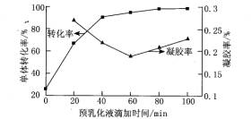 | 圖2-3預乳化液滴加時間對聚合的影響 |