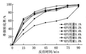<!--[if !supportLists]-->(1) <!--[endif]-->KPS用量對單體轉化率的影響