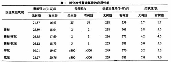 各種改性聚硅氧烷的性能是有差異的,部分改性聚烷氧烷的應用性能如表1[1]