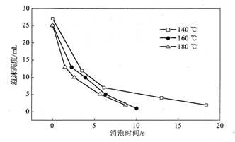 | 圖1 硅膏的不同合成溫度對JUC消泡劑消泡性能的影響 |