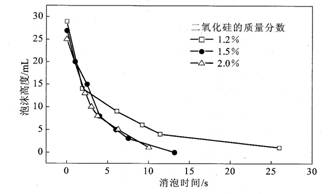 | 圖2 ⒏O2的質量分數對JUC消泡劑消泡性能的影響 |