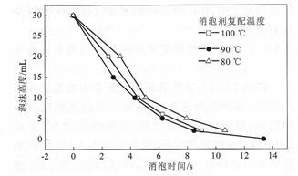| 圖4 消泡劑的復配溫度對JUC消泡劑消泡性能的影響 |