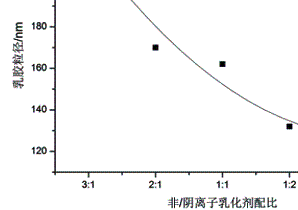 | 圖2 非/陰離子乳化劑配比對產物粒徑的影響 |