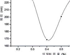 | 圖3 引發劑的用量對單體轉化率的影響 | 圖4 引發劑用量對乳膠粒徑的影響 |