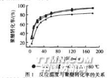 在催化劑作用下,接枝反應可在50~130 ℃下進行.其他條件同1.2.3,考察溫度對接枝反應聚醚轉化率的影響,結果如圖1 所示.