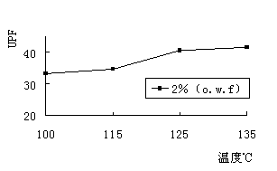 | 圖2 浸染溫度對(duì)UPF的影響 |
