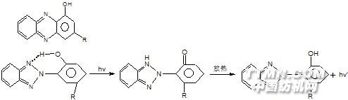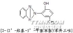 苯并三唑類對紫外線的吸收范圍較廣,可吸收波長為300~400nm的光,屏蔽紫外線效果好,而對400nm以上的可見光幾乎不吸收,因此制品不會泛色。是目前應用較多的一類化合物。但是它沒有反應性基團,活性不高,處理時要吸附于纖維表面才能達到紫外線吸收和屏蔽效果。它的分子結構和分散染料很近似,可以采用高溫高壓法處理并被滌綸纖維吸附,對滌綸有較高的分配系數。一些水溶性的這類化合物適用于錦綸、羊毛、蠶絲和棉織物,但需在分子中接上適當數量的磺酸基。瑞土汽巴的紫外線吸收劑UV-P、UV-236、UV-237就屬于這類產品。如:.jpg)
