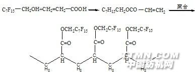 拒油整理劑-丙烯酸氟烴酯樹脂類(FC-208)的合成 FC-208 的合成是由丙烯酸和1,1-二氫全氟辛醇進行酯化,再聚合而制得。其反應式如下:
