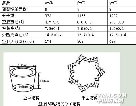 環糊精(cyclodextrins)簡稱CDs,是由淀粉通過環糊精葡萄糖基轉移酶降解而生成的含有6、7、8個甚至更多葡萄糖單元,彼此間通過α-1,4葡萄糖苷鍵連接而成的環狀低聚糖。自從1891年Villier發現它并將其命名為 "木粉"(cellulosine)以來,環糊精研究先后經歷了兩個重要發展階段:20世紀70年代以前,主要從事環糊精結構和化學性質的研究,70年代以后才進入應用階段。近30年來,各種環糊精及其衍生物在國內外已廣泛應用于醫藥、化工、農業、日用消費品及生物技術領域中,只有最近一段時期才有人開始研究環糊精在紡織染整加工中的應用。我國生產和使用環糊精起步較晚,僅有十幾年時間,應用程度遠不及國外發達國家,在紡織染整加工中的應用還是一片空白。