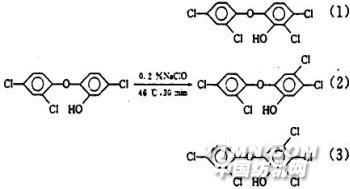 1 前言 現代抗菌防臭(又名衛生)整理劑的發展史,可追溯到1935年由G.Domak使用季銨鹽處理的軍服,以防止負傷士兵的二次感染。1947年美國市場上出現了由季銨鹽處理的尿布、繃帶和毛巾等商品,可預防嬰兒得氨性皮炎癥[1]。1952年英國Engel等人用十六烷基三甲基溴化銨處理毛毯和床(坐)墊面料,但由于季銨鹽活性較低,不耐水洗和皂洗。以后,曾一度使用有機汞、有機錫等高效殺菌劑作為紡織品的抗菌防臭整理劑。但是,由于這類高效殺菌劑很容易引起人體皮膚的傷害,不久就被淘汰了。以后抗菌防臭整理劑一直沿著安全、高效廣譜抗菌和耐久性的方向開發。直至1975年美國道康寧公司推出有機硅季銨鹽(即商品名為DC-5700),可以說是現代抗菌防臭劑中最完美的代表性品種之一。但最近十多年來,無機化合物、纖維配位結合的金屬化合物和天然化合物等三方面的抗菌防臭整理劑的開發研究,其進展令人矚目。 抗菌防臭整理劑的用途主要涉及化妝品、食品、醫藥、造紙和紡織品等。本文就纖維用抗菌防臭劑作一簡單介紹。2 抗菌防臭整理劑的種類抗菌防臭整理劑按其化學結構可分為:醇類、酚類、醛類、酯類、醚類、腈類、鹵素類、吡啶、喹啉類、噻唑類、雙胍類、二硫化合物、硫代氨基甲酸酯類、(多)糖類、表面活性劑類、無機化合物、金屬類以及天然化合物等。但有些抗菌防臭整理劑有不良的副作用,已禁止在服裝面料方面使用。如著名商品Irgasan DP300,其學名為2,4,4'-三氯-2'-羥基二苯醚,其整理產品與含氯漂白劑作用后,會生成三種有毒的氯化物,反應式如下: