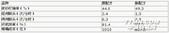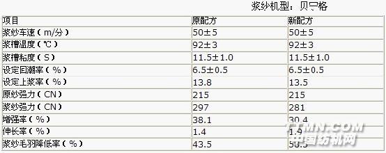 六、效果分析 1、漿紗增強率隨PVA用量的減少而有所降低,但降低幅度不大,完全適應織造需求。 2、漿紗的減伸率由于PVA用量減少,而有所減低,對降低經紗斷頭有利。