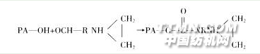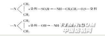 水性墨的染料或顏料分子中通常含有-SO3H、-OH等基團,而主體膠分子帶有的氮丙環(huán)可與這些基團發(fā)生反應,生成不溶于水的物質(zhì)。反應機理如下: