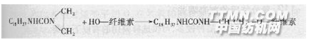 樹脂整理用的柔軟劑,一般具有活性基團,能與棉纖維的羥基結合。目前常用品種為柔軟劑VS,是由異腈酸十八烷醇酯與乙烯亞胺反應而成。它能溶于冷水呈陽離子性。它的乙烯亞胺基團極易與纖維素羥基結合成醚鍵。由于分子的另一端為高分子脂肪族基團,所以又具有柔軟和拒水性能。 將柔軟劑VS加熱至熔點以上(約75℃),乙烯亞胺開環與纖維素結合: