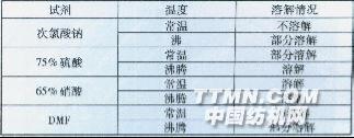 由圖2(a)知,聚乳酸纖維的主要吸收峰具有酯類特征(見表5),屬于聚酯族,然而其紅外吸收光譜圖與聚酯纖維(俗稱滌綸)的紅外吸收光譜圖有明顯差異。大豆蛋白纖維的特征峰除去酰胺基峰以外,與聚乙烯醇纖維(俗稱維綸)的特征峰完全一致,見圖2(b)和表5。而牛奶蛋白改性聚丙烯腈纖維的特征峰除去酰胺基峰以外,與聚丙烯腈纖維(俗稱腈綸)的特征峰完全一致,見圖2(c)和表5。再配合顯微鏡觀察纖維的形態,無論是縱向還是橫截面,大豆蛋白纖維和牛奶蛋白改性聚丙烯腈纖維的纖維形態與聚乙烯醇纖維和聚丙烯腈纖維的纖維形態都是相同的。但是由于添加了酰胺基,使其化學性質發生了改變,不能采用同樣的化學溶解法對其準確定性。3 小結(1)新型生態紡織纖維不能僅通過一種方法對其準確定性,應結合使用顯微鏡觀察法、溶解法和紅外吸收光譜法。