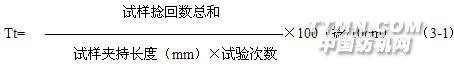 (一)目的要求 使用Y311A型捻度機,根據退捻加捻法和直接計數法原則測定單紗和股線的捻度和捻縮。通過試驗,熟悉捻度機的結構,掌握操作方法和紗線的捻度、捻系數及捻縮的計算。(二)試驗儀器和試樣 試驗儀器為Y311A型捻度機,試樣為單紗和股線各一種。(三)基本知識 紗線捻度是紗線單位長度上的捻回數,用以衡量同一細度紗線的加捻程度。特數制的紗線,捻度用10cm長度內的捻回數表示:公制支數采用每米長度內的捻回數表示。試樣的實際捻度按下式計算:1、特數制實際捻度Tt: