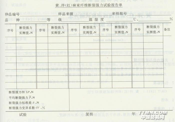 9.3數(shù)值修約 按GB8170平均斷裂強(qiáng)力修約至整數(shù),變異系數(shù)修約至一位小數(shù)。 10試驗(yàn)報(bào)告 試驗(yàn)報(bào)告應(yīng)包括樣品編號(hào)、樣品來源、來樣批號(hào)、品種、等級(jí)、溫濕度和試驗(yàn)結(jié)果等。