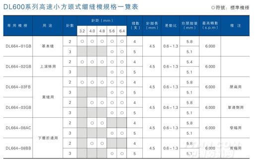 DL600 系列備有極為豐富的各種專用機種,以適應各種各樣的裝飾縫,能滿足高品質及多樣化的縫制要求。