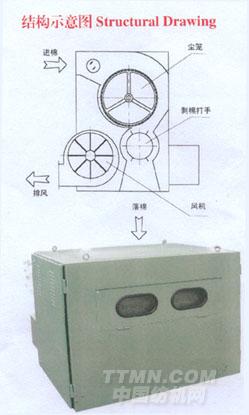 主要用于棉紡廠的開清棉工序,利用風機產生的氣流作用,將原棉或化纖凝聚在網眼塵籠的表面,除去棉流中的部分短絨或細小雜質,再通過剝棉打手的剝取,使得原棉和化纖輸入下一臺機臺,對原料進行繼續(xù)加工。本機還可以應用于其他各種需要輸送或轉移原料的場合。