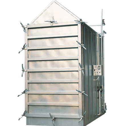 -----蒸紗機(jī)底部水箱及門采用304板(&2.5)制造,箱體采用304板(&1.2)制造,外層封板采用304(&1.2)制造,箱內(nèi)板與外層封板用方通以網(wǎng)格形式結(jié)構(gòu)加強(qiáng)。箱頂部采用間接加熱系統(tǒng)及保溫棉作為保溫,水箱采用直接系統(tǒng)直接加熱,最高工作溫度:95℃。