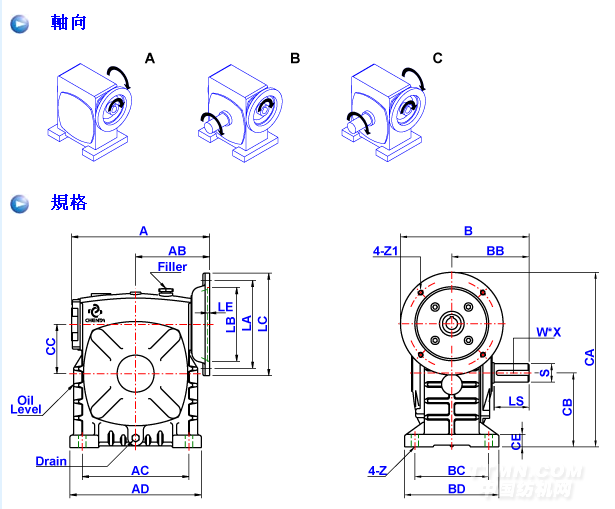 3、輸出、輸入軸位置方向有輸入軸在下及在上;輸出軸向上及向下;輸入軸向上及向下。