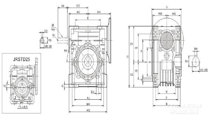 蝸輪蝸桿減速機(jī)JRSTDB系列詳細(xì)圖紙及參數(shù)說明: