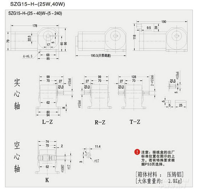 SZG-H直交軸小型15框減速機詳細參數: