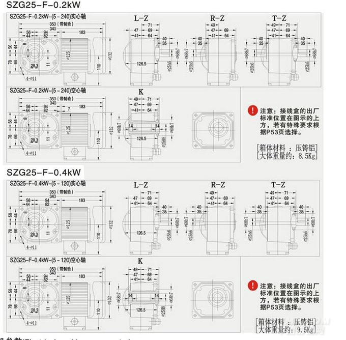 SZG-F直交軸中型25框減速機圖紙及詳細參數: