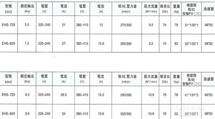 EHS729/829 離心式高壓鼓風(fēng)機(jī)特點(diǎn):壓力高 風(fēng)量大 無油氣 免保養(yǎng) 壽命長 低震動,高風(fēng)壓 體積小,重量輕 低噪音,新設(shè)計(jì)規(guī)格:三相交流電50HZ/60HZ 最大風(fēng)量:5.2立方米/6.2立方米功率:2200W/2600W 電壓:200-240V/220-240V 346-415V/380-480V 電流:6.7A/10.6A 5.6A/6.1A